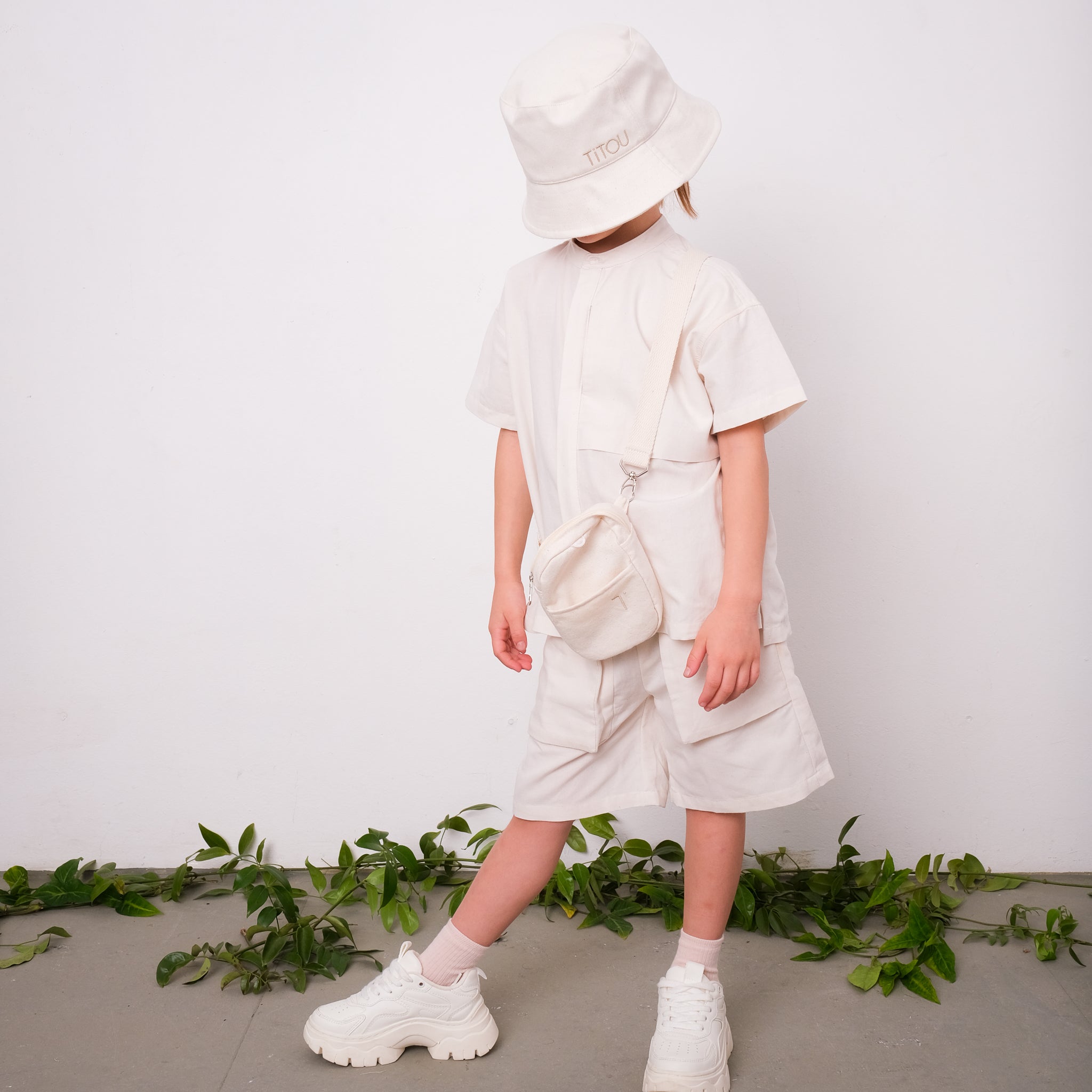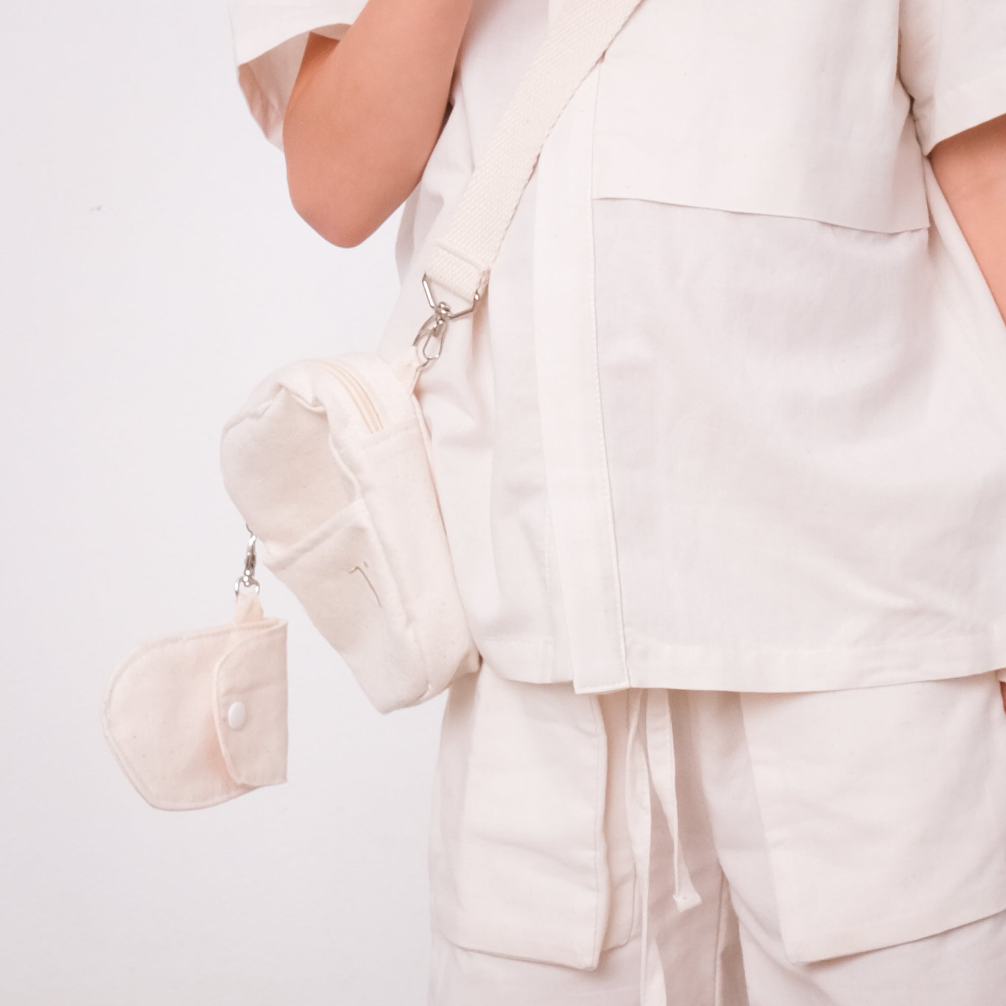 - A bolsa principal (15 x 11 cm) possui bolsinho frontal e bordado bege com a logo da TITOU.