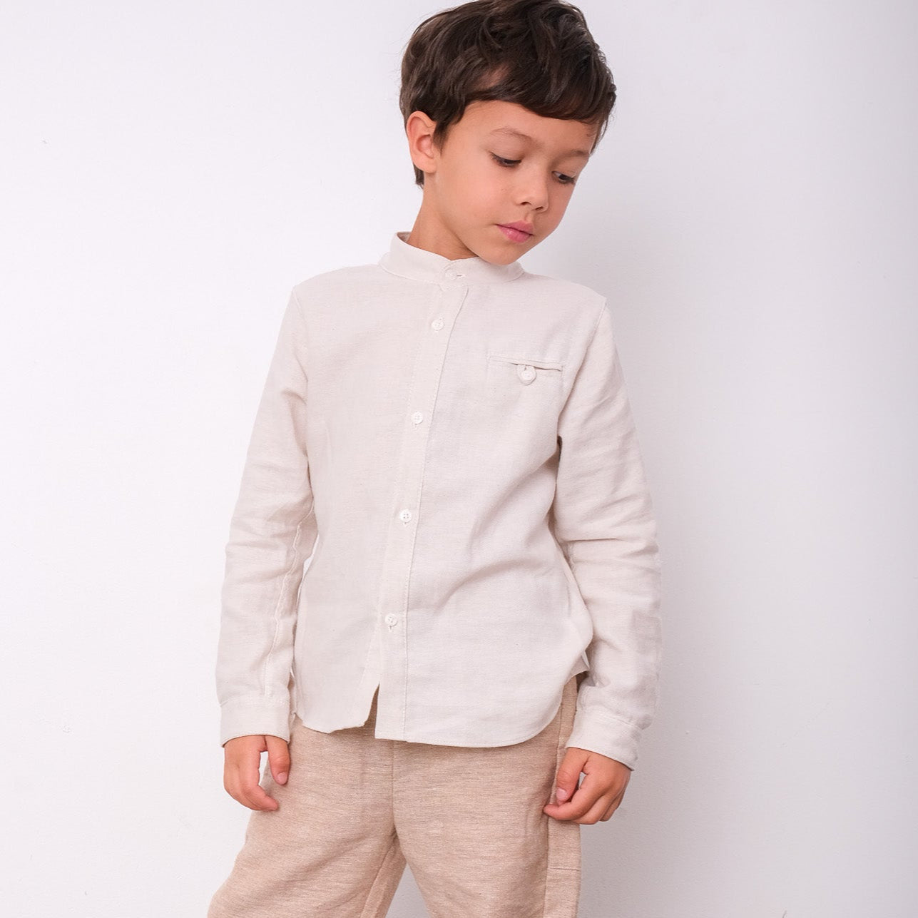 • Camisa de alfaiataria com a modelagem padrão, pequeno bolso frontal com botão
